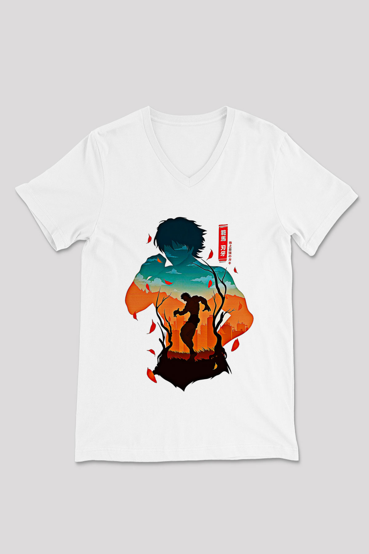 Baki The Grappler Baskılı Beyaz Unisex V Yaka Tişört - Tshirt (VT58770)