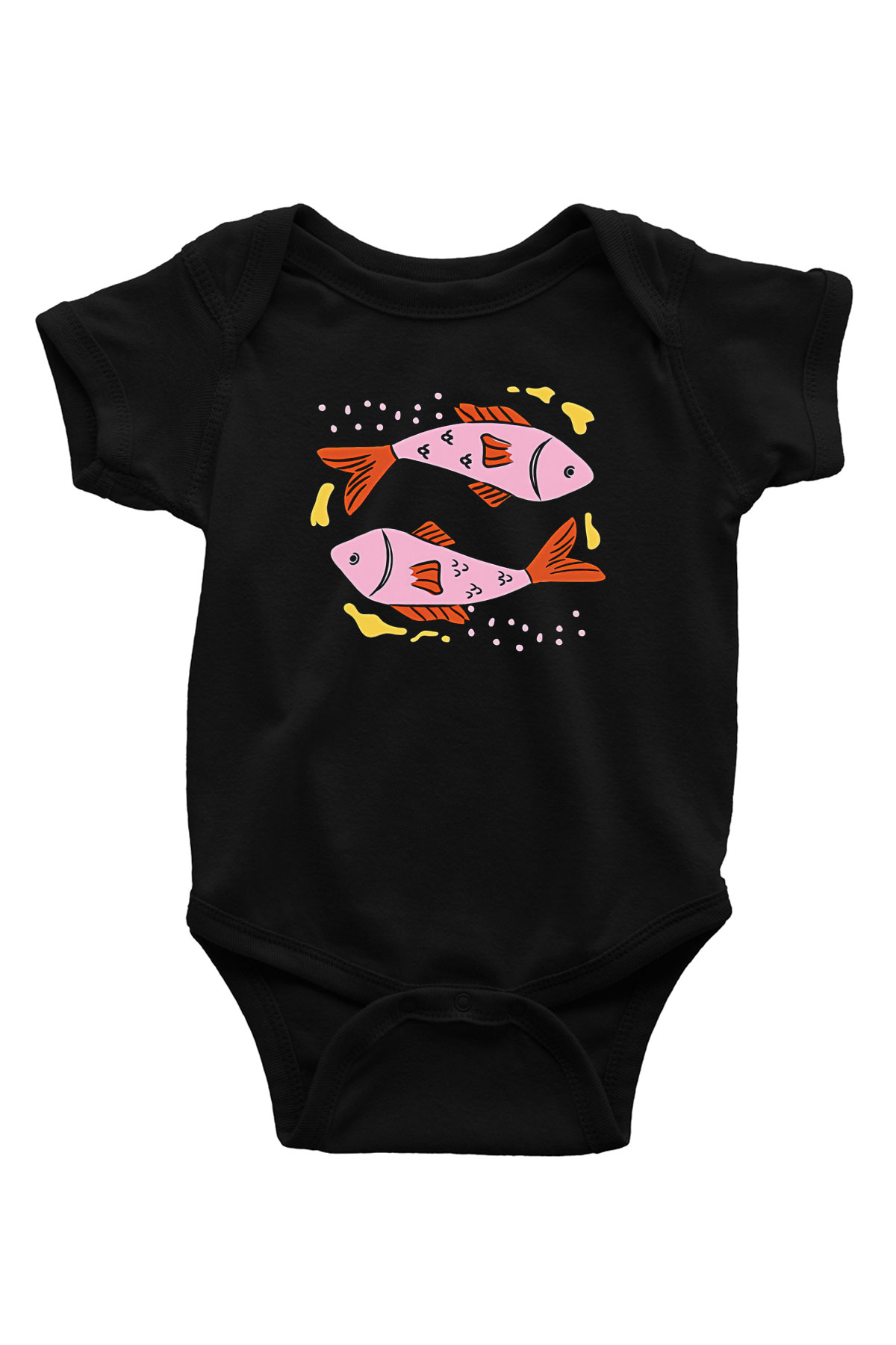 Balık Burcu Baskılı Unisex Siyah Bebek Body - Zıbın