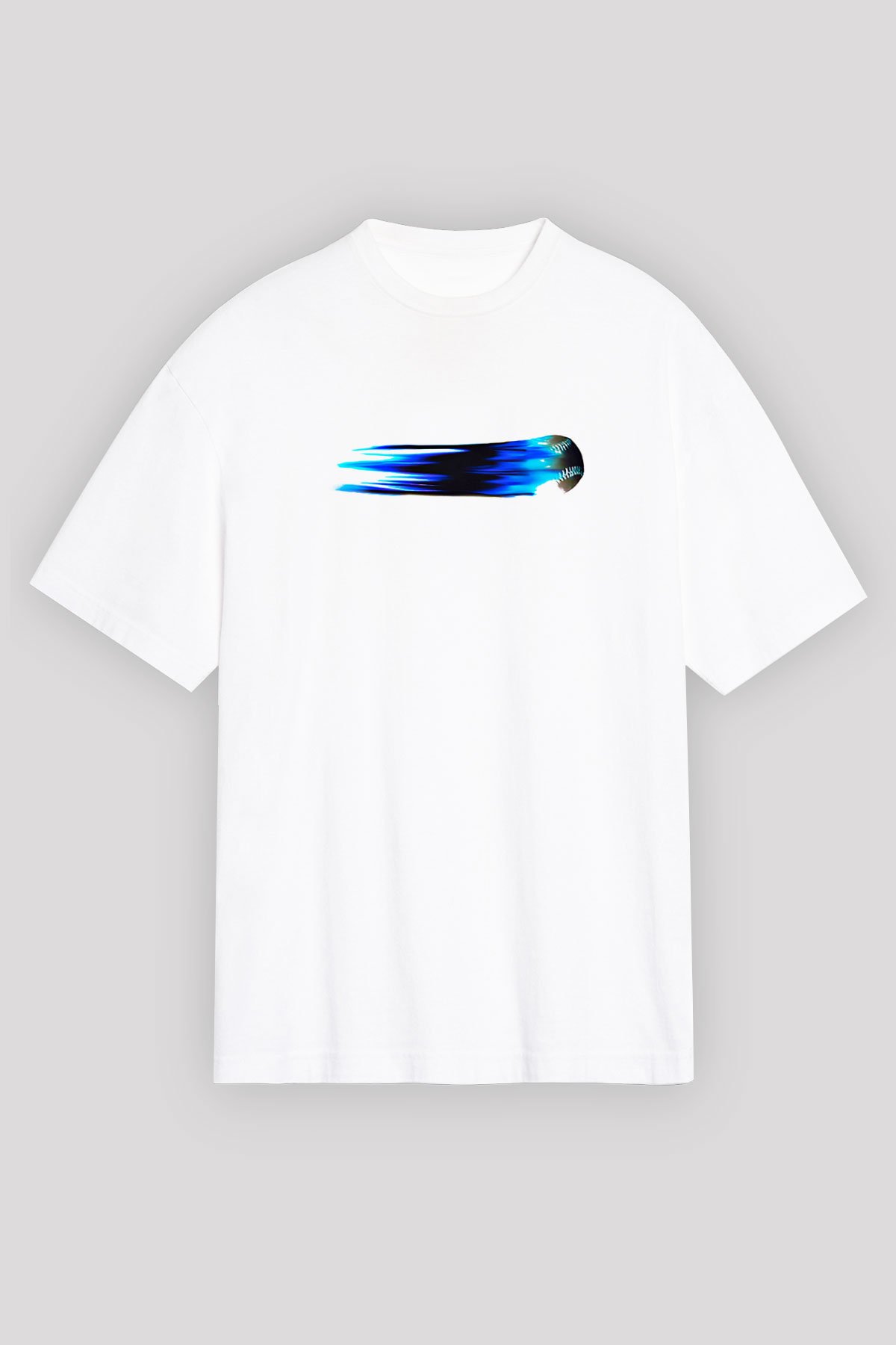 Beyzbol Baskılı Unisex Beyaz Oversize Tişört - Tshirt