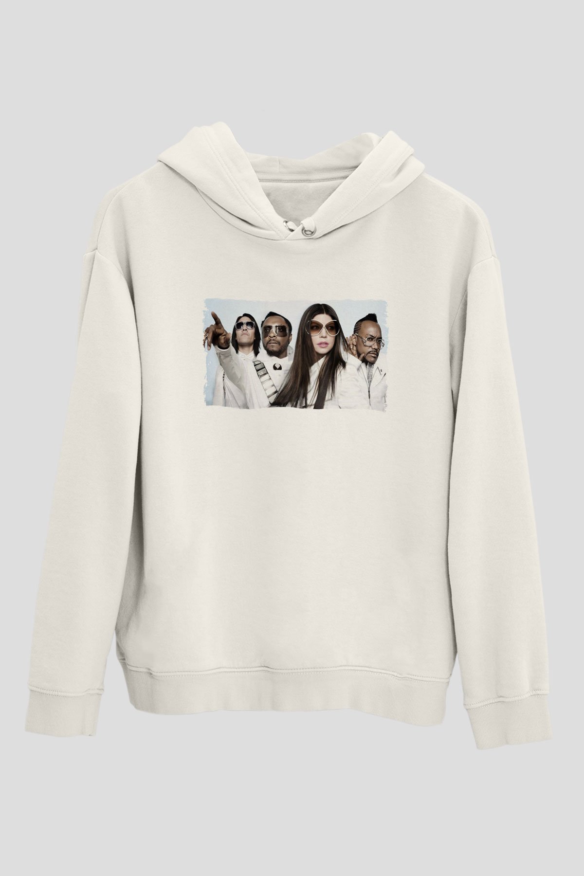 Black Eyed Peas Beyaz Unisex Kapüşonlu Sweatshirt (HUD4016)