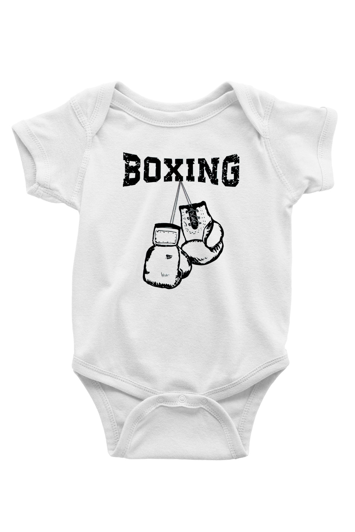 Boks Baskılı Beyaz Unisex Bebek Body - Zıbın