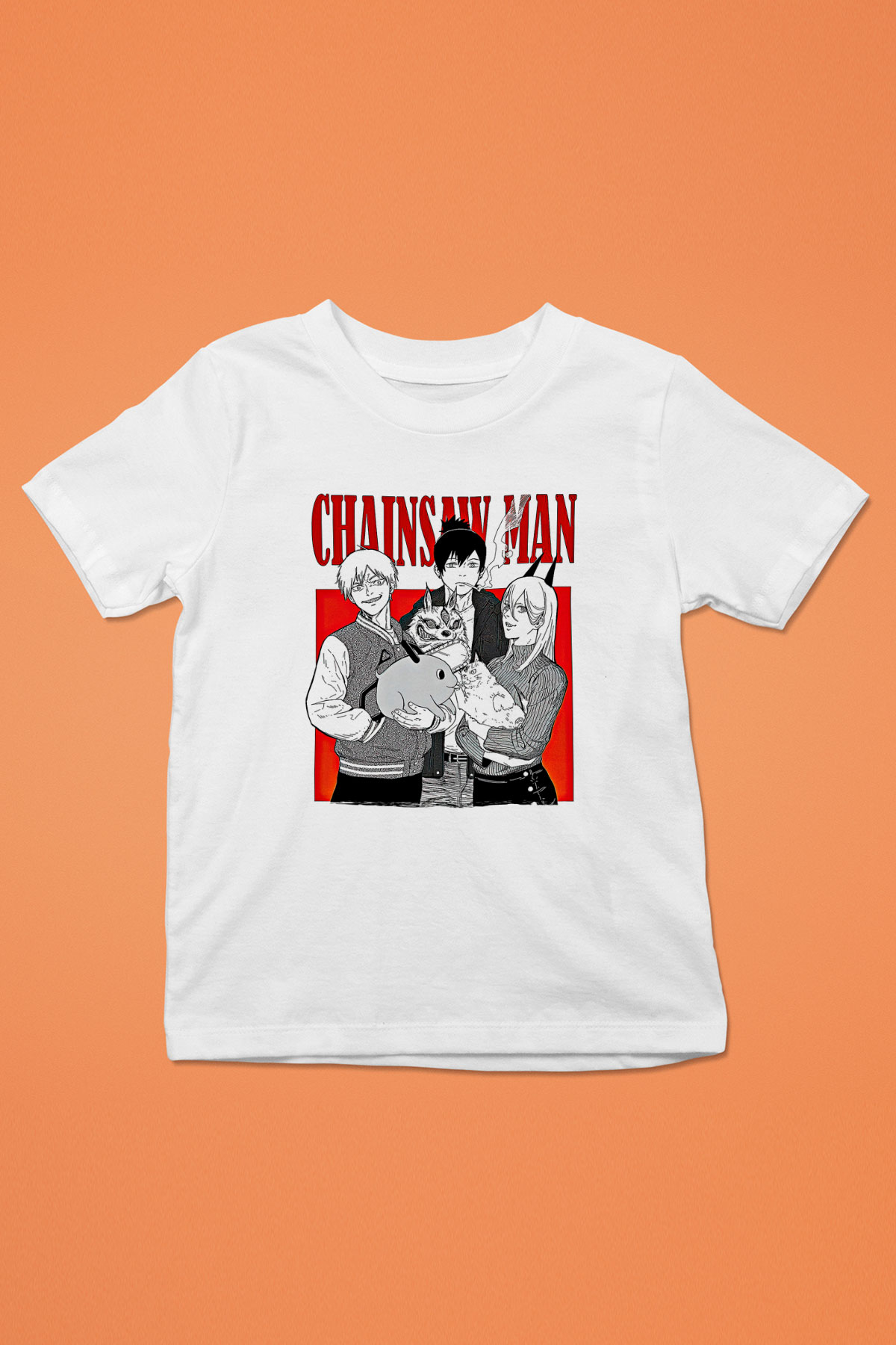 Chainsaw Man Baskılı Beyaz Unisex Beyaz Çocuk Tişört - Tshirt (CUT58828-1)