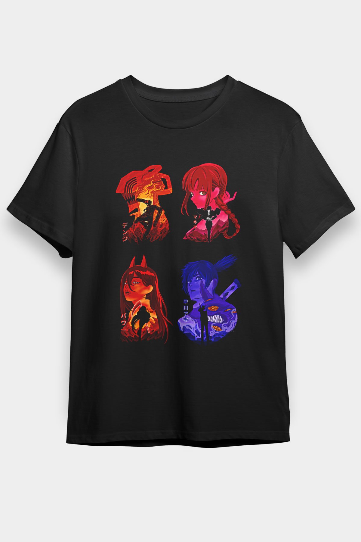 Chainsaw Man Baskılı Unisex Siyah Tişört - Tshirt (T58835)