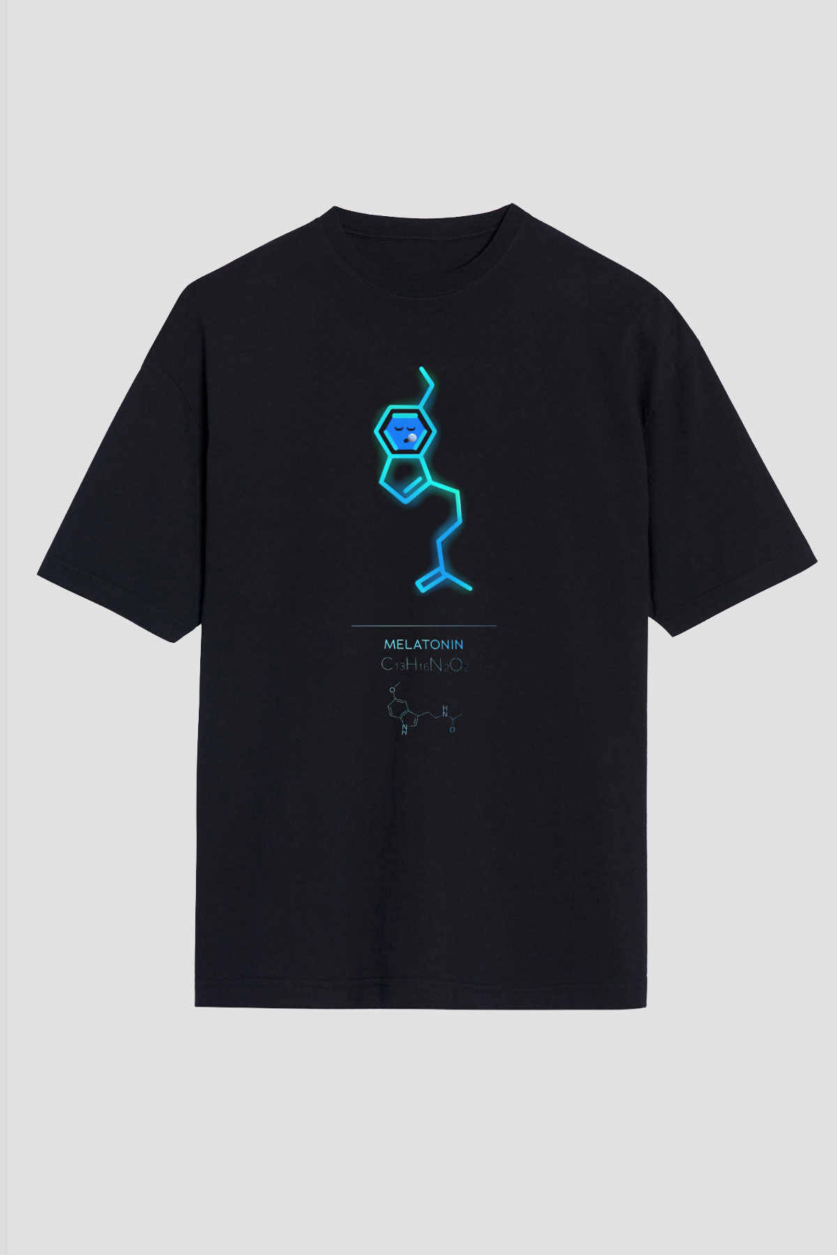 Melatonin Molekülü Baskılı Unisex Oversize Tişört - Tshirt