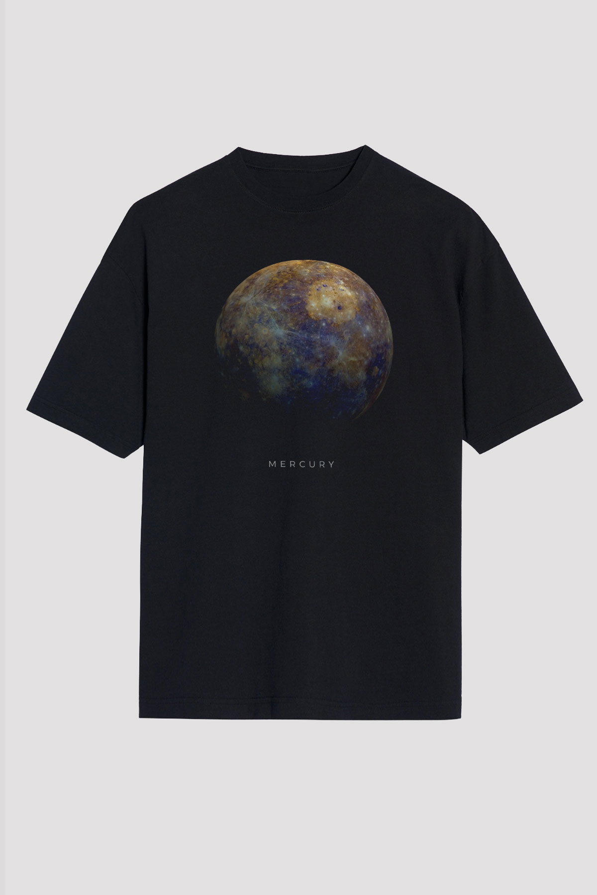Merkür Gezegen Baskılı Unisex Oversize Tişört - Tshirt