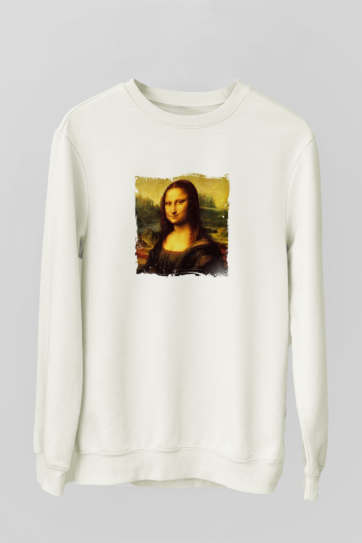 Mona Lisa Unisex Baskılı Beyaz Sweatshirt (SW19236F3)