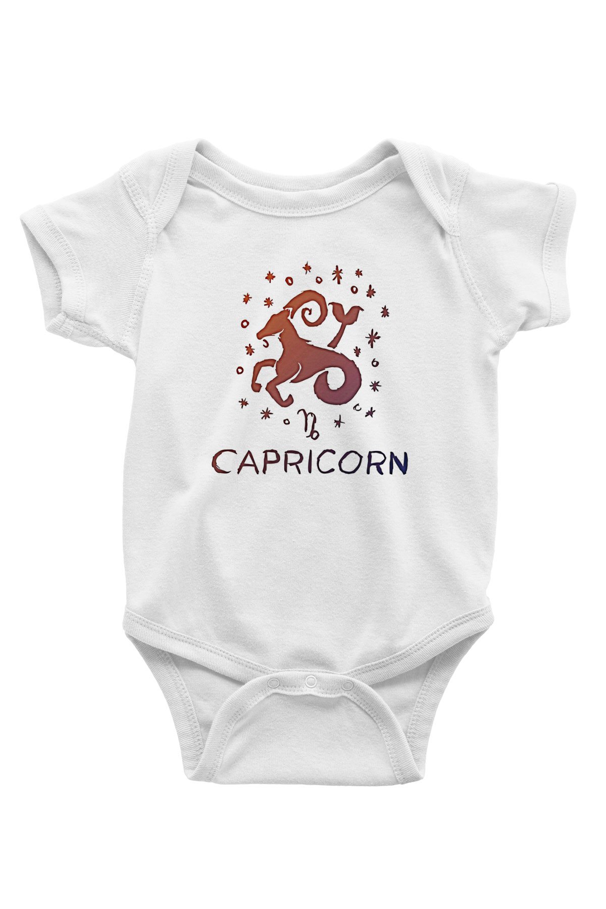 Oğlak Burcu Baskılı Beyaz Unisex Bebek Body - Zıbın