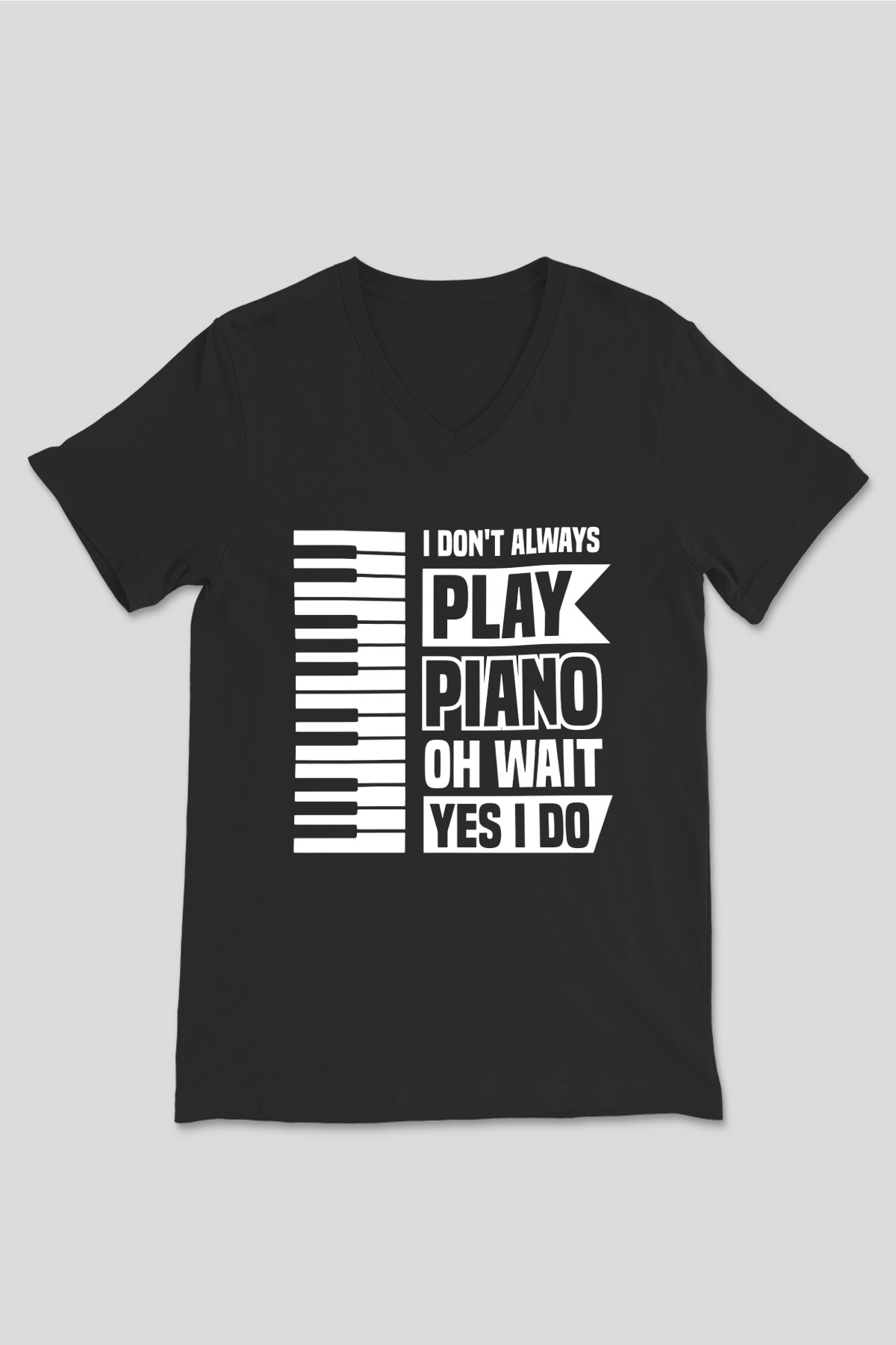 Piyanist Siyah Unisex V Yaka Tişört (VT9999)