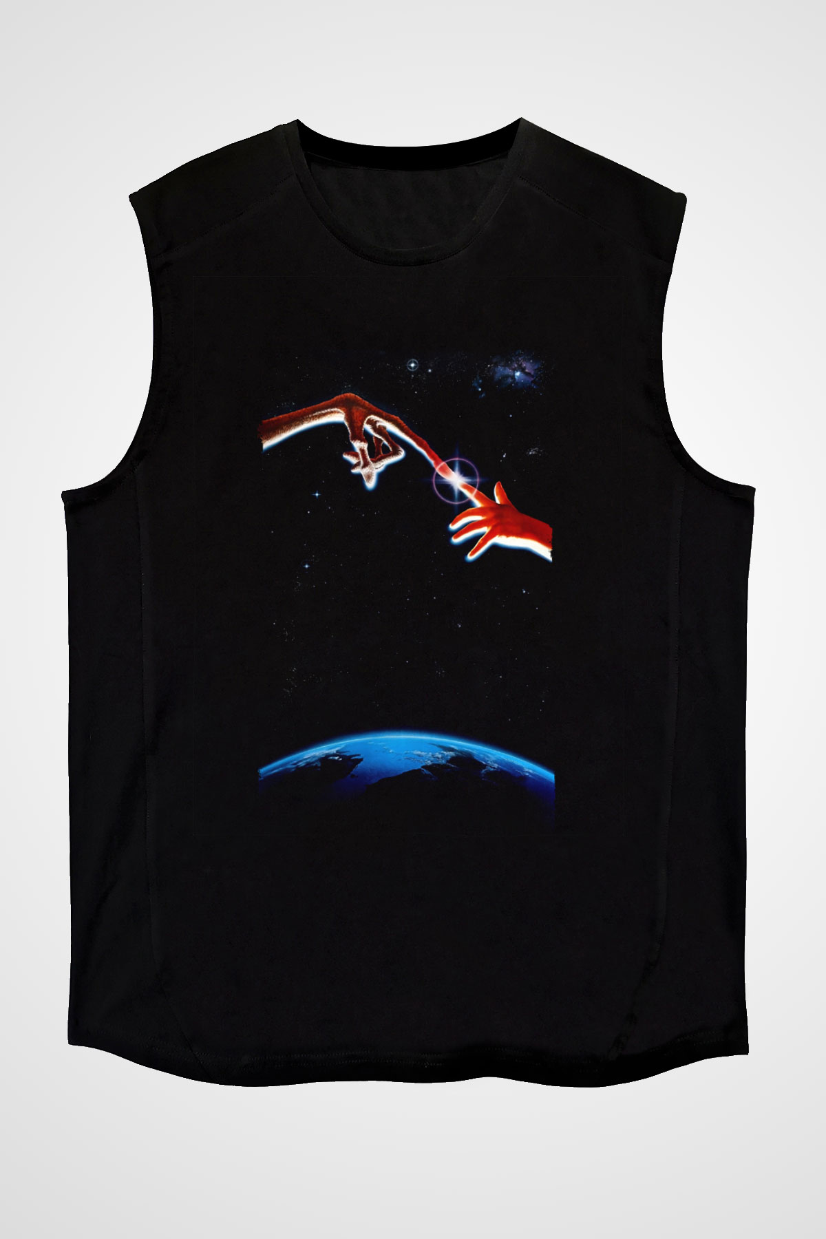 Unisex E.T. (E.T. the Extra-Terrestrial) Baskılı Siyah Kolsuz T-shirt (KK19478)