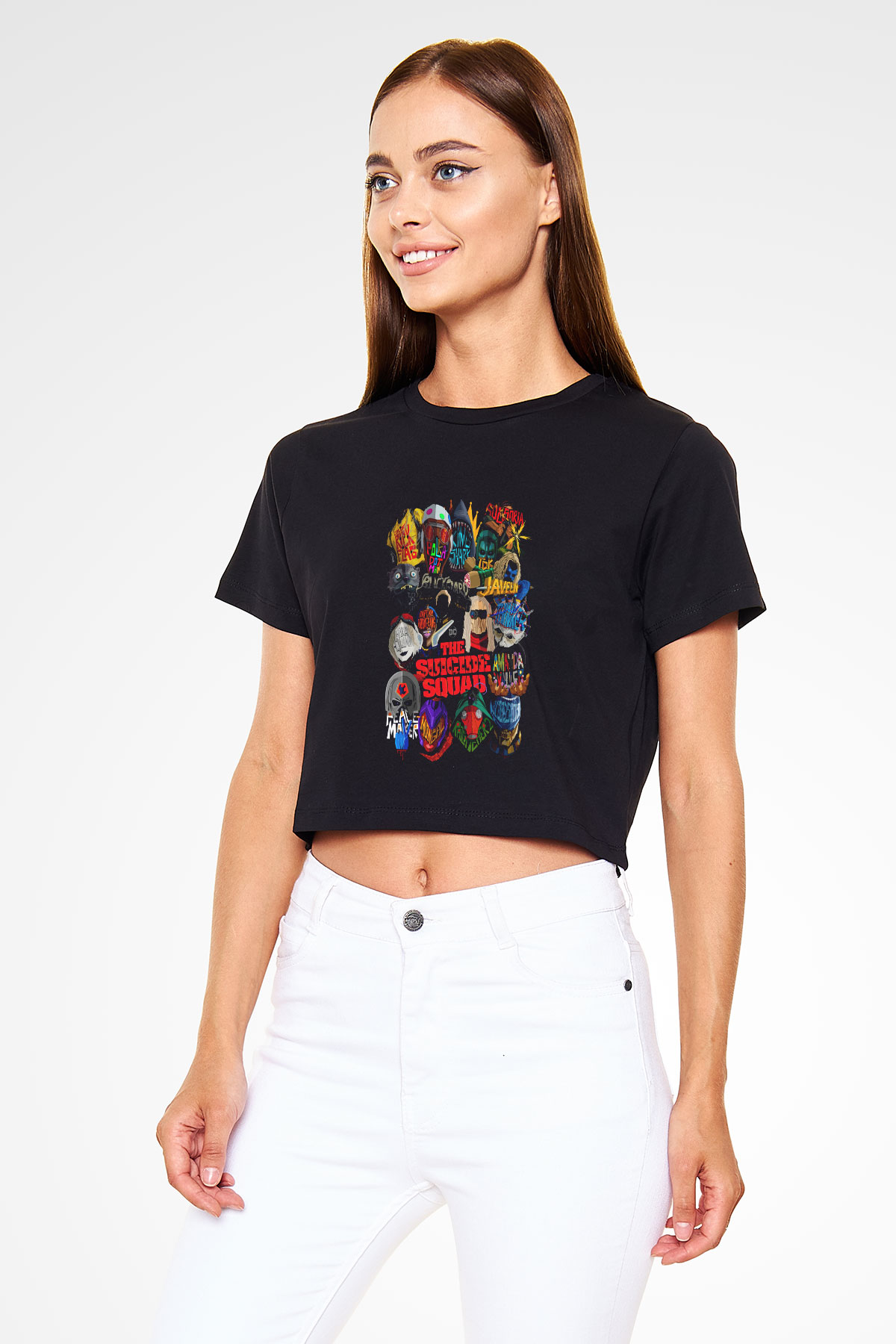 Unisex İntihar Timi (The Suicide Squad) Baskılı Siyah Crop Top T-shirt