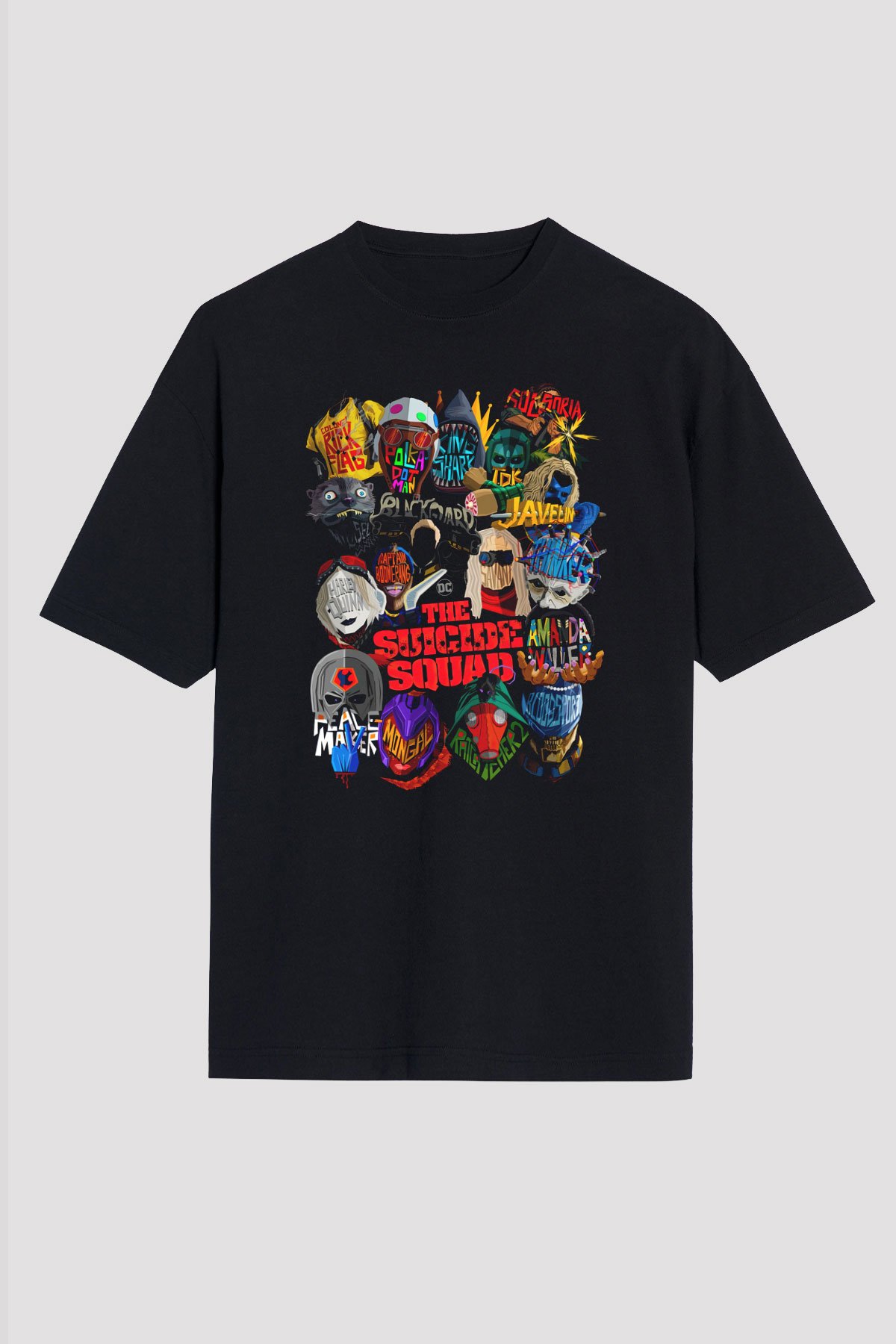 Unisex İntihar Timi (The Suicide Squad) Baskılı Siyah Oversize T-shirt (OS19542)