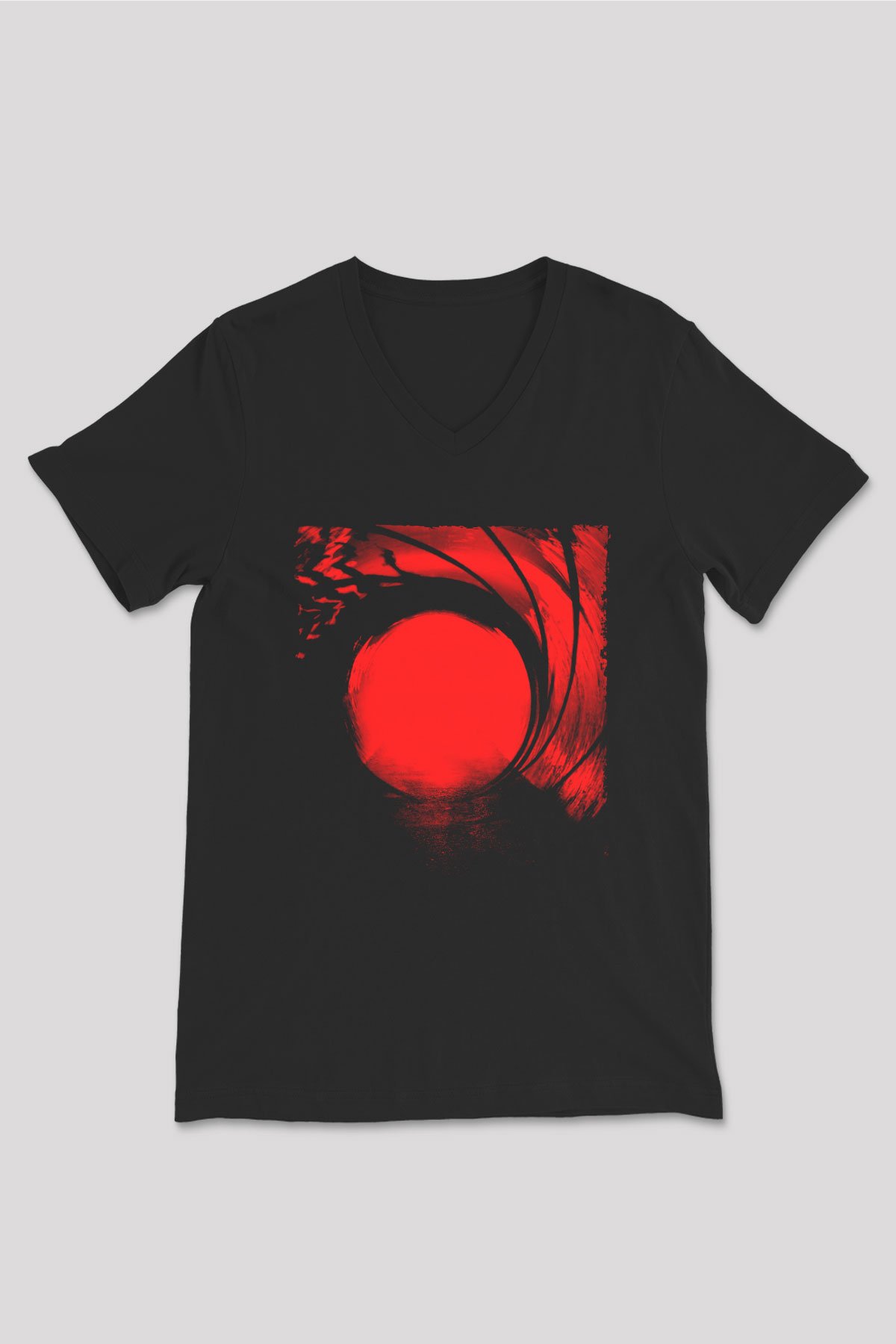 Unisex Skyfall Baskılı Siyah V Yaka T-shirt (VT19745)