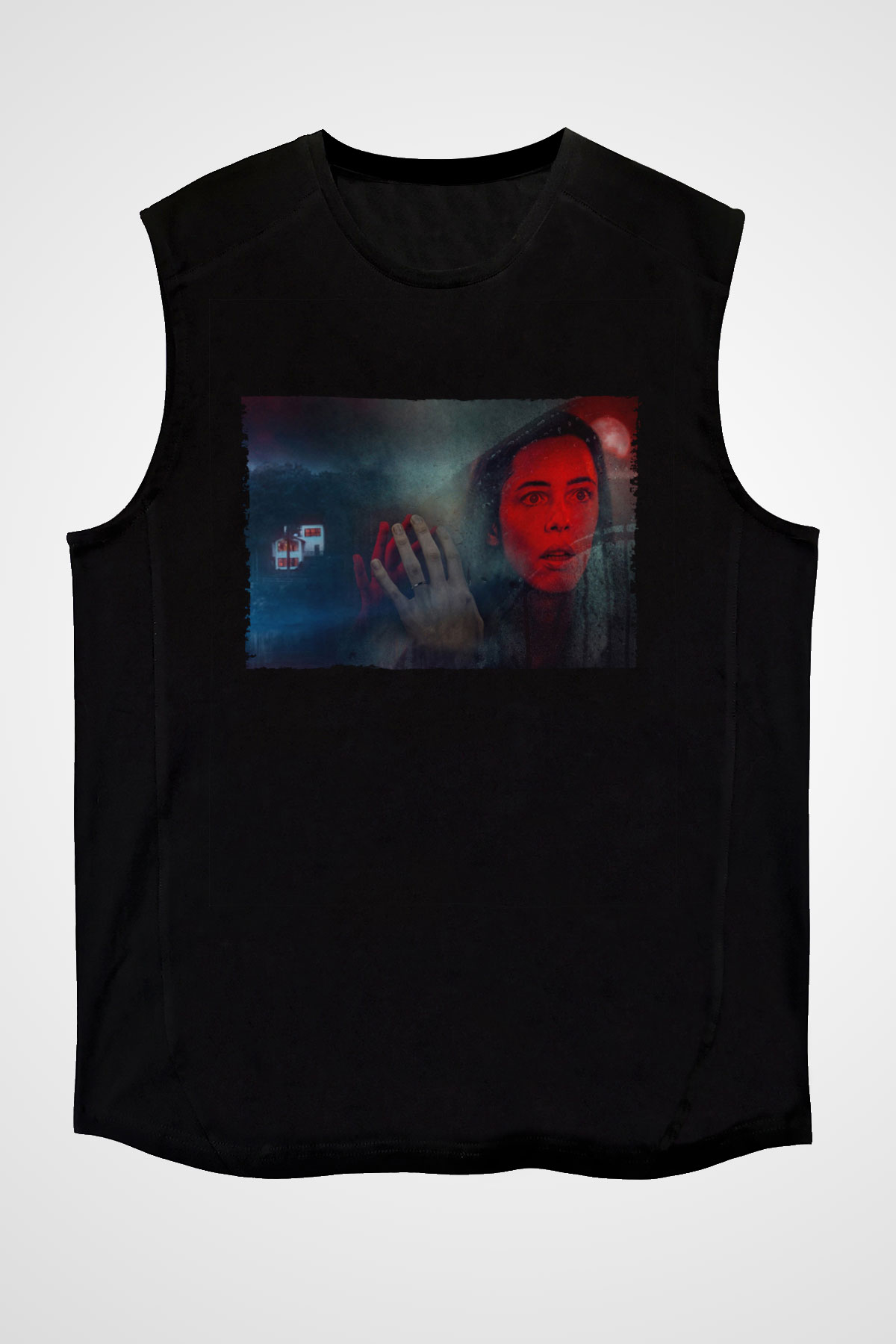 Unisex The Night House Baskılı Siyah Kolsuz Tişört (KK19793)